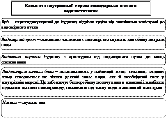 Внутрішній водопровід – це трубопроводи та інженерне обладнання, призначені для забезпечення подачі води від зовнішніх мереж водопроводу до всіх внутрішніх водорозбірних приладів, технологічного обладнання і пожежних кранів.