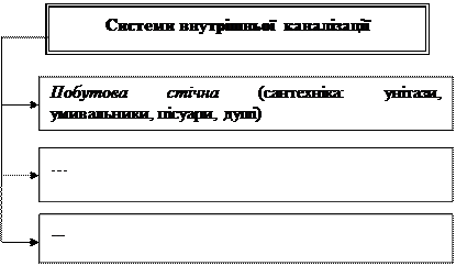Система внутрішньої каналізації складається з таких основних елементів: приймачів стічних вод, гідравлічних затворів, внутрішньої каналізаційної мережі (поверхові відвідні труби, стояки, горизонтальні ділянки і випуски) (рис. 14).