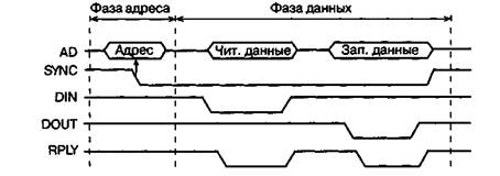 То есть на данной магистрали адрес передается синхронно (без подтверждения его получения исполнителем), а данные передаются асинхронно, с обязательным подтверждением их выдачи или приема исполнителем. Отсутствие сигнала подтверждения -RPLY в течение заданного времени воспринимается процессором как аварийная ситуация. В принципе возможна и асинхронная передача адреса, что увеличивает надежность обмена, хотя может снижать его скорость.