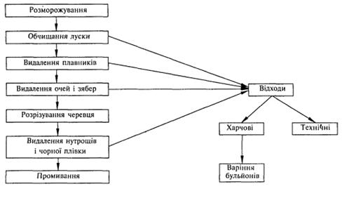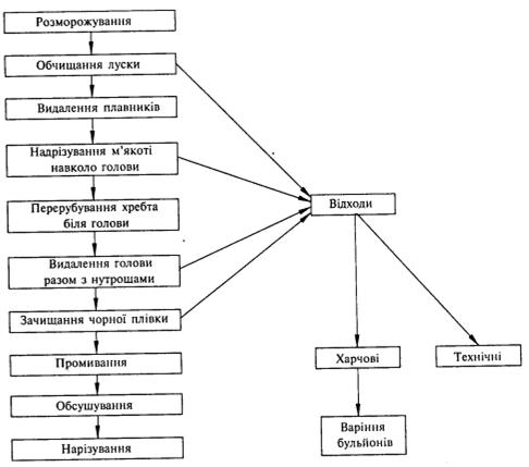 Рис.7. Технологічна схема розбирання риби а порційні шматки – кругляки.
