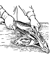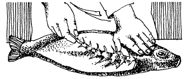 Рис. 13. Знімання шкіри з щуки “панчохою"