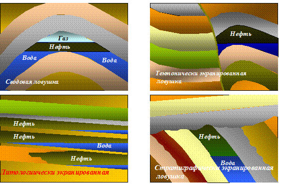 ü а так же пласта особой формы, попав в который нефть и газ оказываются как бы в тупике (ловушке).