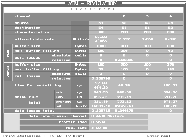 Согласно варианту (табл. 3.1) загрузить файл с параметрами (см. меню программы, п. 4). Изменяя скорость потока, исследовать влияние интенсивности трафика конкретного типа на характеристики трафика других типов в сети АТМ (провести не менее 5 экспериментов).