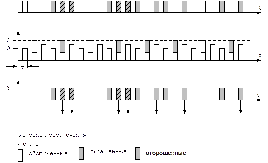 Рис. 4.3. Временные диаграммы работы алгоритма «дырявого ведра».