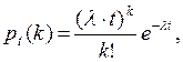 Поток событий, который обладает свойствами стационарности, отсутствия последействия и ординарности, называется простейшим или пуассоновским потоком. Вероятность появления k событий простейшего потока за временной отрезок t можно рассчитать по формуле Пуассона
