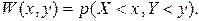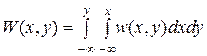 По аналогии с одномерным случаем функцией распределения двумерной непрерывной случайной величины (X,Y) называют функцию W(x,y), определяющую для каждой пары чисел x и y вероятность того, что X примет значение, меньшее x, и при этом Y примет значение, меньшее y, т.е.