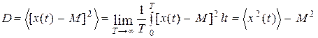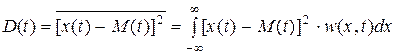 Дисперсия непрерывного случайного процесса, так же определяемая по аналогии, позволяет судить о степени разброса мгновенных значений, принимаемых отдельными реализациями, в фиксированном сечении t относительно среднего значения