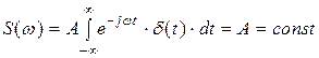 , т.е. дельта - импульс имеет равномерный спектр на всех частотах.