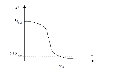 Если ввести понятие ширины спектра детерминированного сигнала и понимать под ней частотный интервал, в пределах которого модуль спектральной плотности не меньше некоторого наперед заданного уровня, например (рис. 1.3), изменяется в пределах от |S|max до 0,1|S|max,