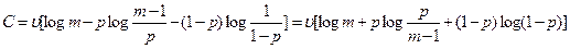 В качестве примера определим пропускную способность дискретного симметричного канала без памяти, через который в единицу времени передаются u символов из алфавита с объемом m.