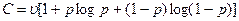 При p=0,5 пропускная способность двоичного канала C=0, поскольку при такой вероятности ошибки последовательность выходных двоичных символов можно получить, совсем не передавая сигналы по каналу (канал не нужен), а просто выбирая их наудачу (например, бросая монету), т.е. при p=0,5 последовательности символов на входе и на выходе канала независимы. То, что пропускная способность при p=0 (канал без шумов) равна пропускной способности при p=1, объясняется тем, что p=1 означает, что все входные символы при прохождении через канал обязательно преобразуются под воздействием помех в противоположные. Следовательно, чтобы правильно восстановить на выходе входное сообщение, достаточно инвертировать все выходные символы.
