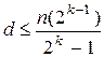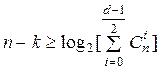 Выражение (3.20) удобно для получения максимально возможного d при заданных n и k, но не очень удобно для получения максимального k при данных d и n, в связи с чем другая форма границы Плоткина выглядит следующим образом