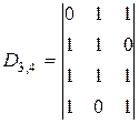 . В данном случае n=7, k=4, n-k=3, т.е.D3,4.. Следовательно, надо подобрать трехразрядные комбинации, каждая из которых содержит по d-1=3-1=2 единицы.Поскольку таких комбинаций всего три, а их требуется k=4, то в качестве четвертой выберем, не нарушая первого условия, комбинацию, содержащую три единицы. Тогда дополняющая матрица