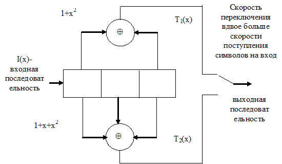 Таким образом, сверточный код, формируемый этим кодером, имеет следующие параметры: