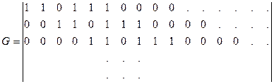 Выходная последовательность, соответствующая произвольной входной последовательности может быть получена путем суммирования по модулю два соответствующих сочетаний строк этой матрицы.