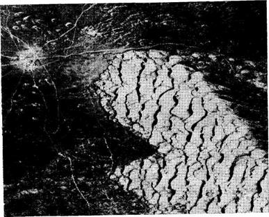Рис. 92. Грядовые полузакрепленные пески. Аэрофотоснимок. Масштаб — 1 : 18 000