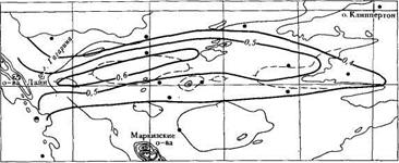 Разнос течением остатков отмирающего планктона привел, в конечном счете, к образованию огромной по протяженности (более 2 тыс. км), ширине (до 400 км) и высоте (до 1,5 км) аккумулятивной формы (рис. 118).