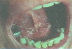 Рис. 10-4.Рак дна полости рта на фоне лейкоплакии