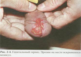 3. Генитальный герпес. Возбудитель – вирус простого герпеса, который поражает кожу тела и гениталий. Симптомы появляются через 4-5 дней после заражения. Недомогание, головная боль, лихорадка, мышечные боли, сопровождаются появлением на половых органах и коже тела группы мелких пузырьков. Пузырьки, вскрываясь, оставляют болезненные эрозии. Если находятся на половых органах, больной ощущает боль и жжение при мочеиспускании. В дальнейшем герпес может рецидивировать. Лечение проводится противовирусными препаратами. Беременные женщины должны сообщить своему врачу о заражении, т.к. вирус может инфицировать ребенка во время родов, вызывая у него пневмонию и поражения нервной системы.