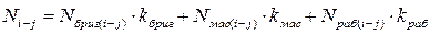 | № п/п | Код работы (i – j) | Категория персонала, чел. | Приведённая численность Ni-j, бриг. | ||