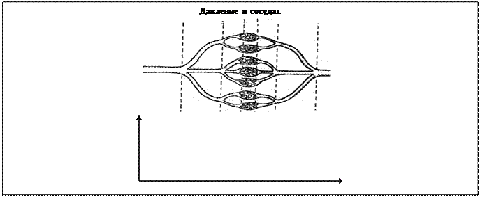 · Давление в сосудах при продвижении крови от сердца к периферии и далее к полым венам последовательно уменьшается, снижаясь в полых венах практически до нуля.