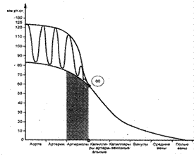 Аорта и стенки сосудов, получившие во время систолы добавочное напряжение, стремятся в силу упругости уменьшить свою емкость и во время диастолы продвигают вперед систолический объем крови. Расширение стенки и повышение давления происходит теперь на прилежащем участке. Колебания давления, волнообразно повторяясь и постепенно ослабевая, захватывают все новые и новые участки артерий, пока не достигают артериол и капилляров, где пульсовая волна гаснет.