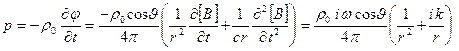 При малых “r” течение, представленное первым членом, полностью соответствует течению несжимаемой жидкости. На некотором удалении от сферы это течение отличается от существующего при аналогичных условиях в полностью несжимаемой жидкости тем, что возмущение от источника приходит в точку поля не мгновенно, а через время – r/c. Это запаздывание обусловлено сжимаемостью жидкости.