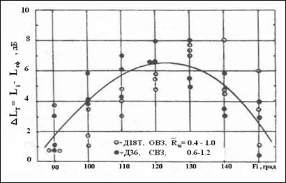 дБ – для случая излучения в полусферу. Фактор направленности акустического излучения (10lgФ) определяется с помощью обобщенной графической зависимости, приведенной на рисунке 7.6.