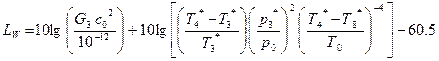 Расчет шума турбины может быть выполнен по следующим формулам. Суммарный уровень звукового давления в направлении максимального излучения (θ=120°) равен: