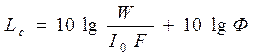 Суммарный по спектру излучения уровень звукового давления (Lc) определяется по известным уровню мощности излучения (LW) и фактору направленности (10lgФ)
