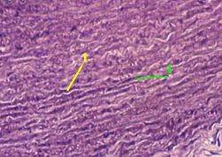 | Внутренняя оболочка | Под эндотелием и хорошо выраженным подэндотелиальным слоем находится внутренняя эластическая мембрана (а не сплетение эластических волокон, как в аорте). |