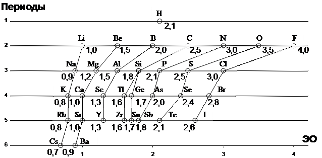 Рисунок 3.4 Шкала электроотрицательности по Полингу