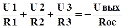 Если входное сопротивление ОУ достаточно велико (Rвх®¥) и входной ток пренебрежимо мал по сравнению с током в цепи обратной связи,то по закону Кирхгофа