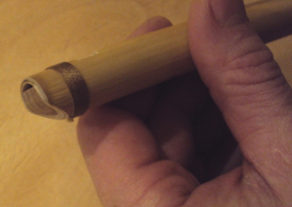 Можно стянуть ниткой край дудочки, чтобы камыш не треснул: