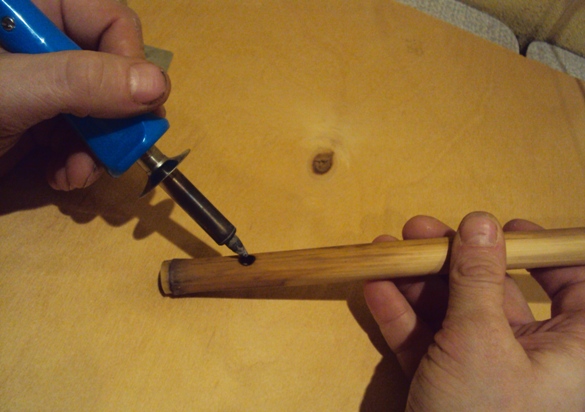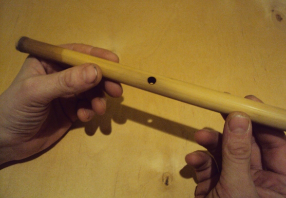 Последним прожигаем отверстие с нижней поверхности флейты: