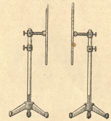 Один из дисков замените остриём 1 или гвоздём со срезаной шляпкой, который расположите на расстоянии 12—15 см от второго диска. Если теперь остриё соединить с положительным, а диск с отрицательным полюсом электрофорной машины, то получается сильный «электрический ветер» между остриём и диском.