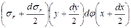 Рассмотри условия равновесия бесконечно малого элемента диска (рис.19), образованного двумя цилиндрическими поверхностями, отстоящими друг от друга на расстояние dy и двумя меридиальными плоскостями, расположенными относительно друг друга под бесконечно малым углом dj.