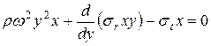 Для равновесия элемента сумма проекции всех действующих сил в радиальном направлении равна нулю. Объем изучаемого элемента yxdjdy, а его центробежная сила rw2y2xdjdy.