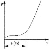 На рис. 11.8. представлений графік розвитку вибуху в координатах тиск – час, де τ1 = 25-60 мс; τ2 = 10-15 мс (для водневих і ацетиленових сумішей).