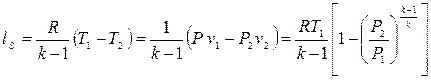 . У реальному компресорі стискування іде по політропі з показником n=1,25÷1,3. Технічна робота компресора питома та повна: