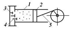 Процеси в ідеальному і реальному компресорі: 4-1 – всмоктування газу в циліндр 1, робота всмоктування – площа 4-1-V1-0; 1-2 – стиск газу, робота стискування – площа V1-1-2-V2; 2-3 – виштовхування газу із циліндра, робота виштовхування – площа V2-2-3-0-V2; 3-4 – миттєве падіння тиску, L=0. Газ виштовхується поршнем 2.