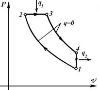 4-1 – ізобарний вихлоп, відвід теплоти q2 у циклі.