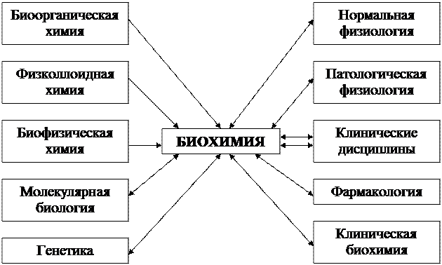 Рис. 1.1. Связь биохимии с другими дисциплинами