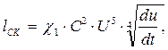 где c - коэффициент, определяемый опытным путем, С - удельная поверхностная емкость (емкость единицы поверхности диэлектрика, по которой развивается разряд, относительно противоположного электрода), Ф/см.
