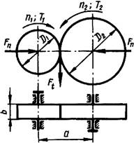 Принимая f=0,1 и К=1,5, получаем Fn=15Ft, тогда как в зубчатых передачах нагрузка в зацеплении примерно равна Ft.