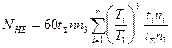 где T1 и n1- вращающий момент и частота вращения, соответствующие режиму с наибольшей нагрузкой; Ti, ni и ti-соответственно вращающий момент, частота вращения и время i –го режима нагружений, tΣ – ресурс передачи, ч; n3 – число контактов рабочего тела за один оборот. Значения Ti, ni и ti выбираются из циклограмм нагружений.