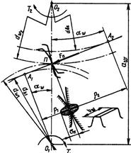 2. Суммарное смещение хΣ не равно нулю. Обычно хΣ>0,а также х1>0 и х2>0. При положительных x1 и х2 делительная толщина зубьев шестерен и колеса больше р/2. Поэтому делительные окружности не могут соприкасаться. Начальными становятся новые окружности, большие, чем делительные (dw1>d1, dw2>d2). Межосевое расстояние увеличивается: