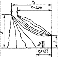 , м. Для группы стержневых молниеотводов S – площадь, ограниченная дугами окружностей, описанных радиусами
