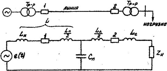 Рис.8.1. Упрощенная схема замещения электропередачи