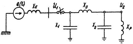 д) Перенапряжения при отключении ненагруженных трансформаторов. Изучение перенапряжений при отключении ненагруженного трансформатора будем вести на основании схемы замещения рис. 2-15 в которой L1 и С1 представляет собой индуктивность и емкость источника. L2 – индуктивность отключаемого ненагруженного трансформатора, а С2 – входная ёмкость трансформатора с учетом ошиновки.